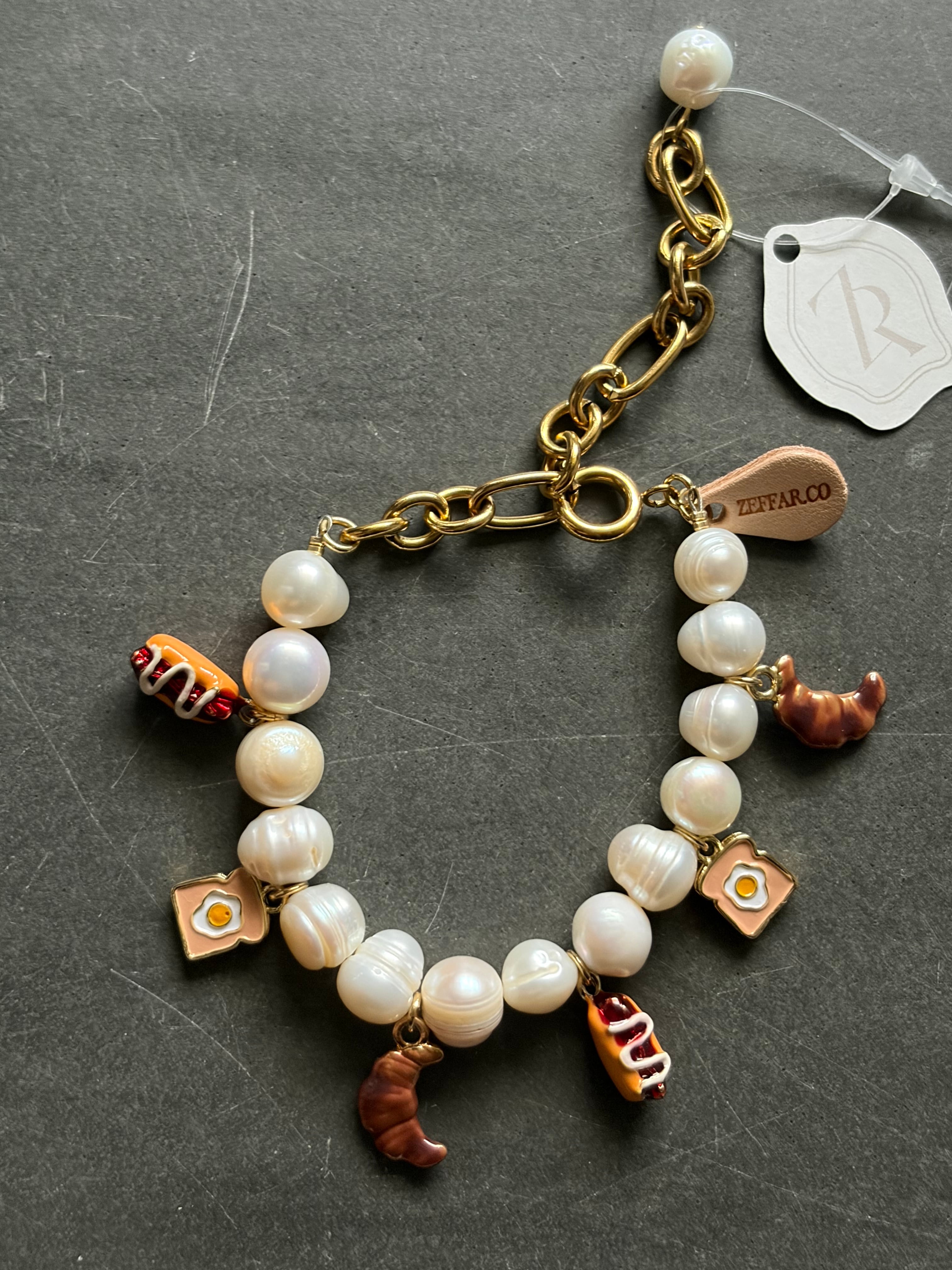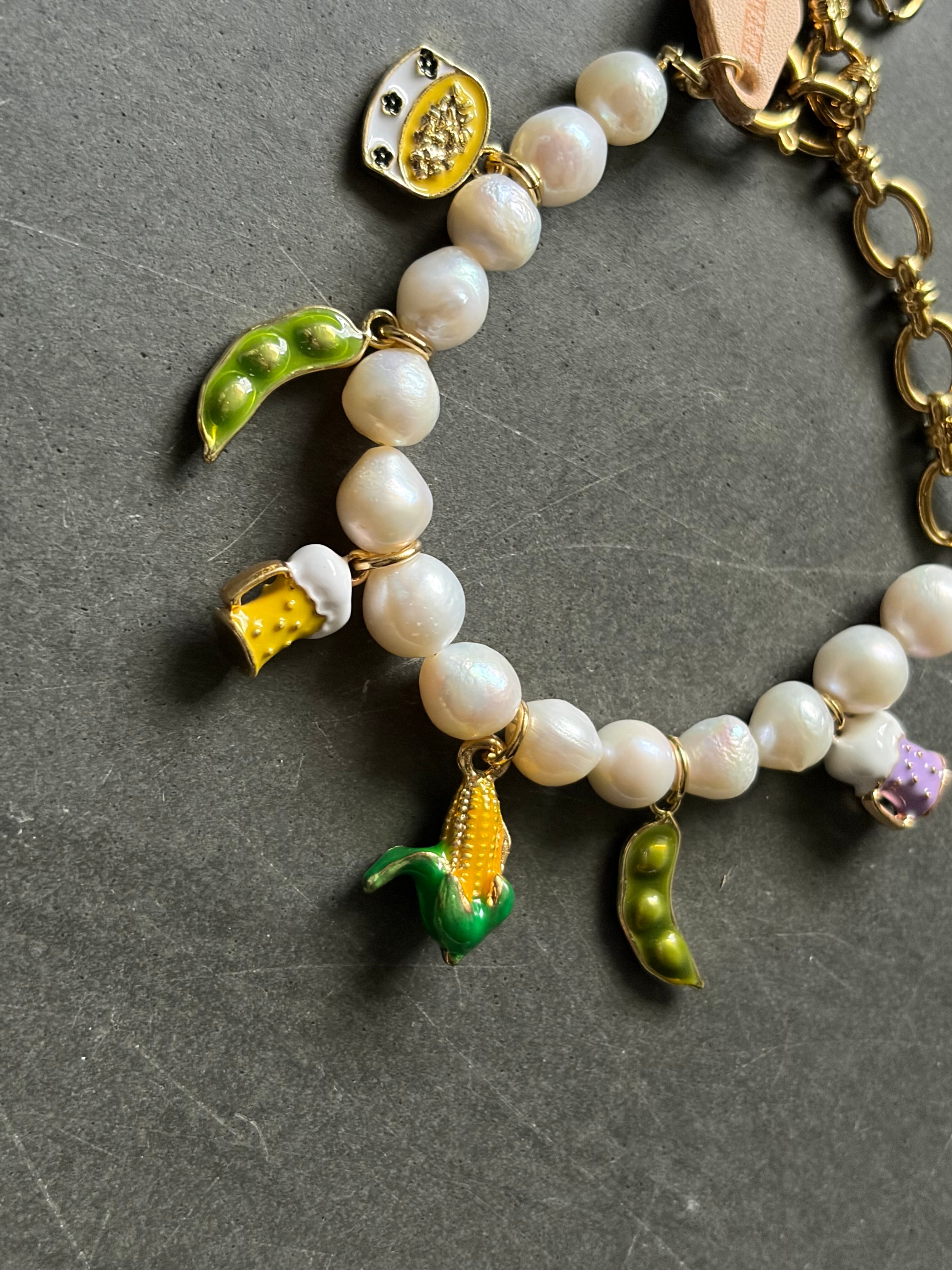 チャームがたくさん付いた大人可愛い遊び心あるブレスレットです。