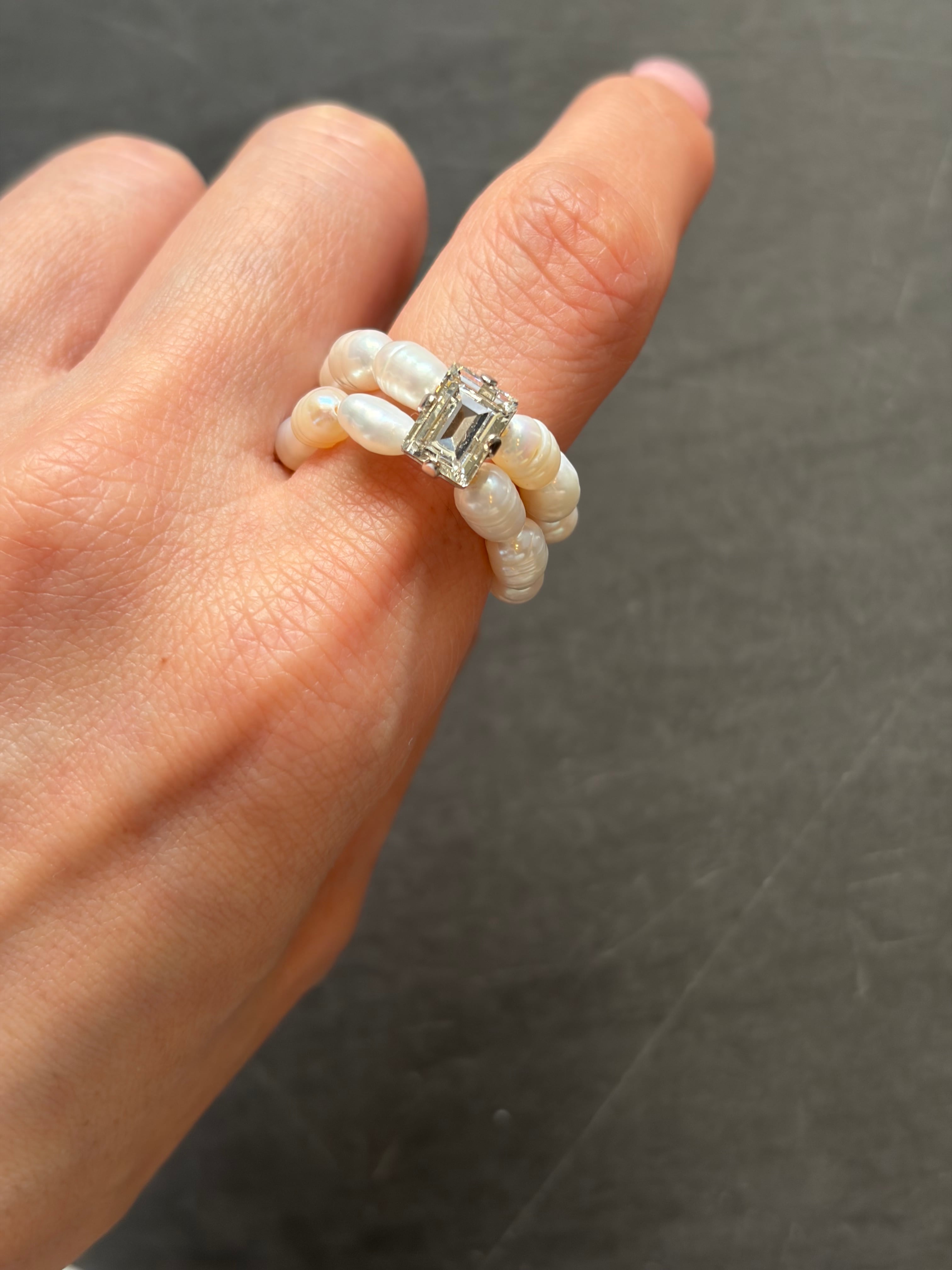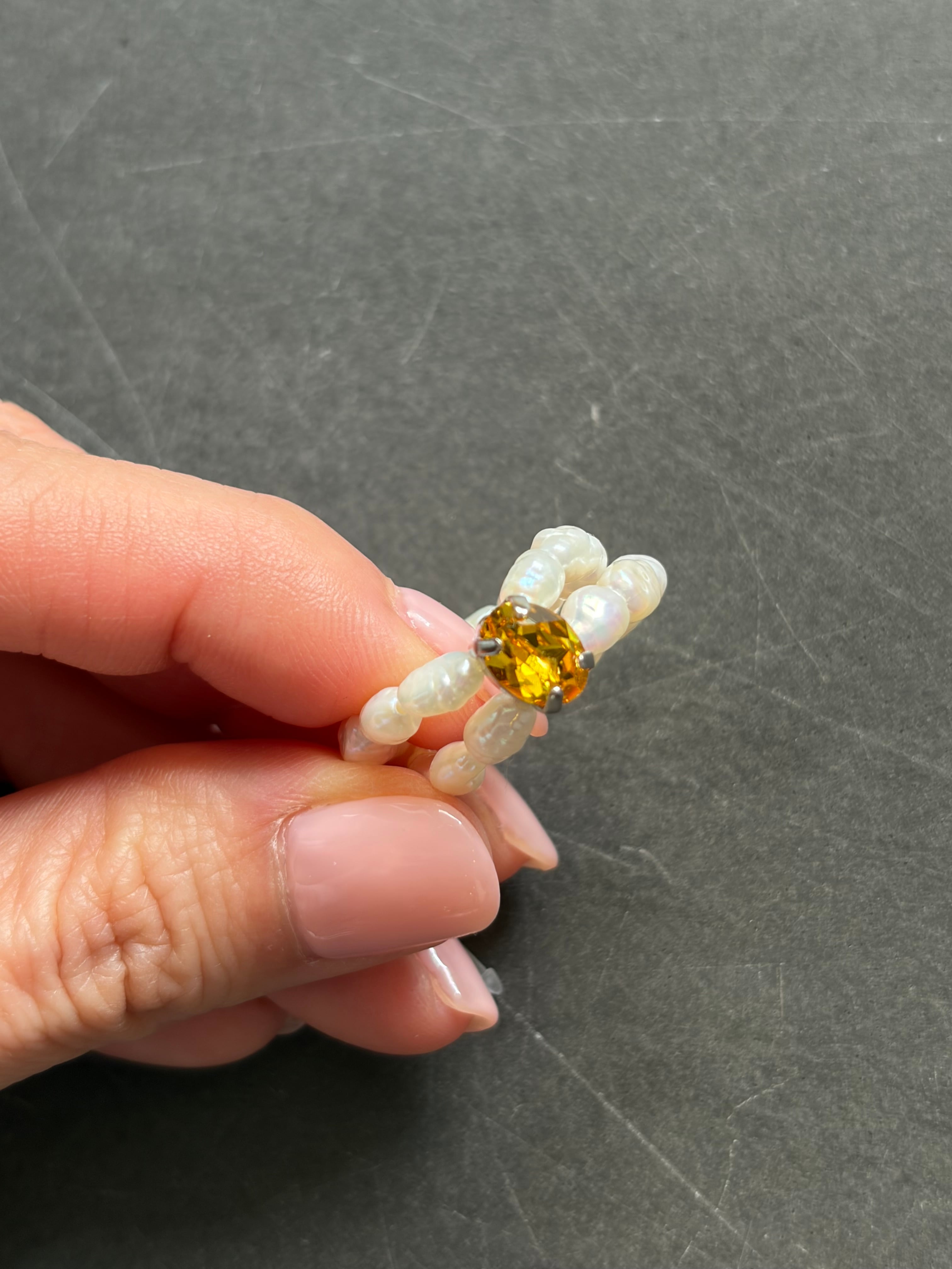 淡水パールとビジューの存在感がとっても可愛いゴムリングです。
