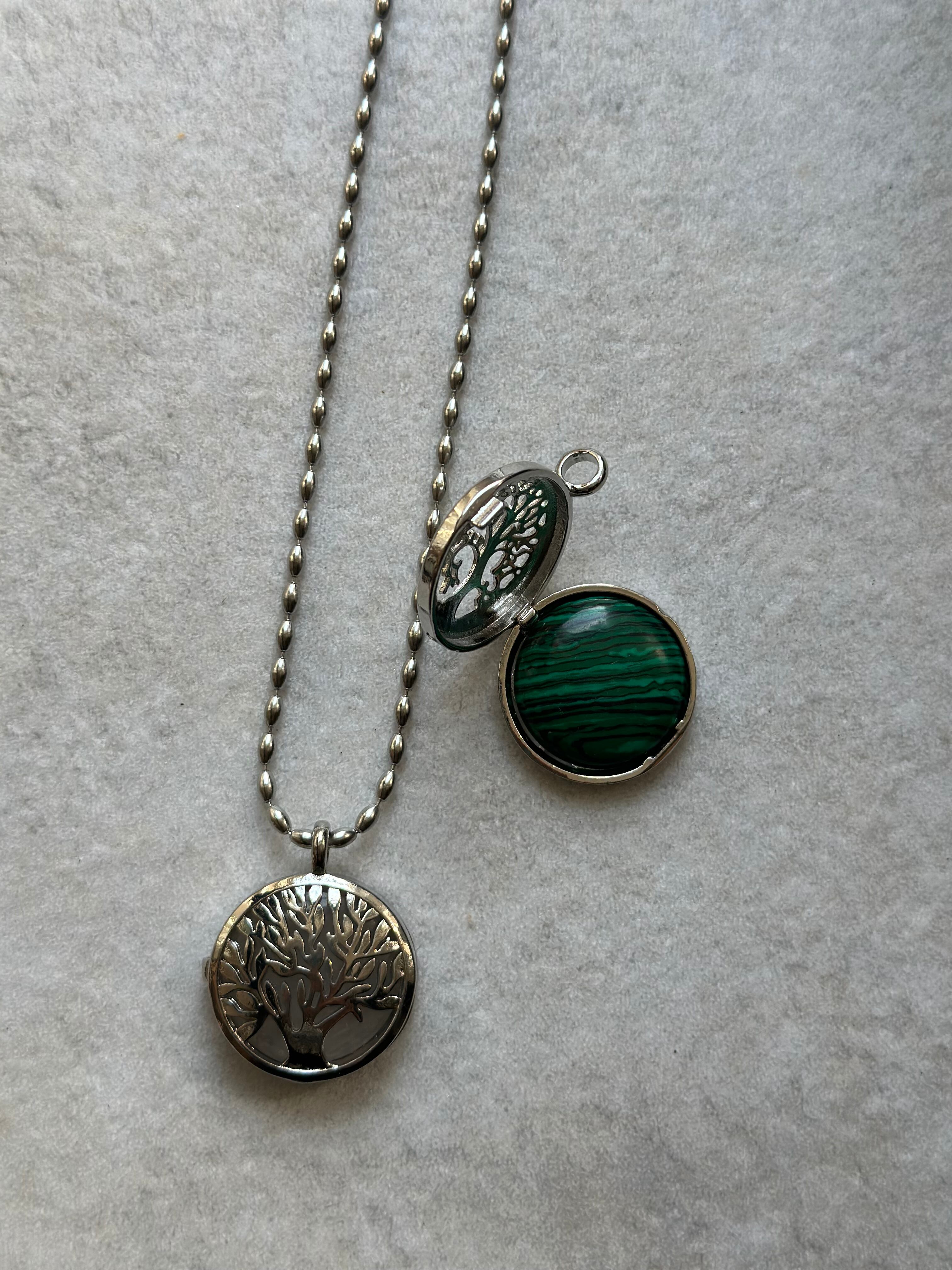 天然石ローズクオーツと、合成マラカイトが入ったペンダントTOPです。